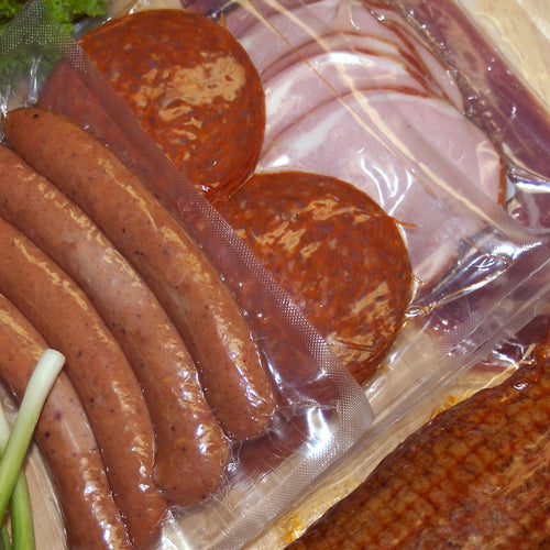 Co-Extruded Vacuum Pouches are constructed from a durable nine-layer, 3-mil thick film blend of polyethylene and nylon resins and offer strength, puncture resistance, and flexibility. With a low oxygen transfer rate, these pouches are great for packaging a variety of products including meats, fish, nuts, dried fruits, jerky, and snacks. Designed for use with chamber vacuum machines and are available in a wide range of sizes and gauges.